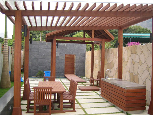 不過,作為戶外用的防腐木,它自身的熱脹冷縮沒有經(jīng)過特殊的控制,因此變形比較嚴重。在鋪設(shè)防腐木地板的時候,通常就需要做成留有縫隙的地板,并且像鏤空的一樣一塊被架起來,可以隨時翻開,方便清洗或者撿拾掉落的東西。